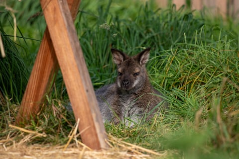 Damit sie sich wohlfühlen, sorgen wir für ausreichend Schutzräume, wettergeschützte Bereiche und artgerechte Lebensbedingungen. So können unsere Wallabys auch hier in der Schweiz gesund